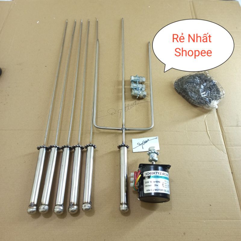 Mô Tơ Giảm Tốc 220v 20w + Xiên Nướng Gà + Bộ Chế Máy Nướng Mini