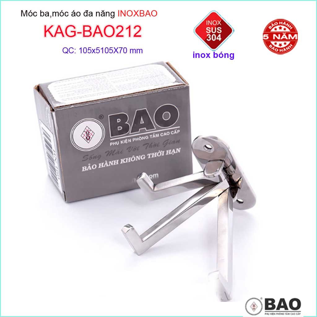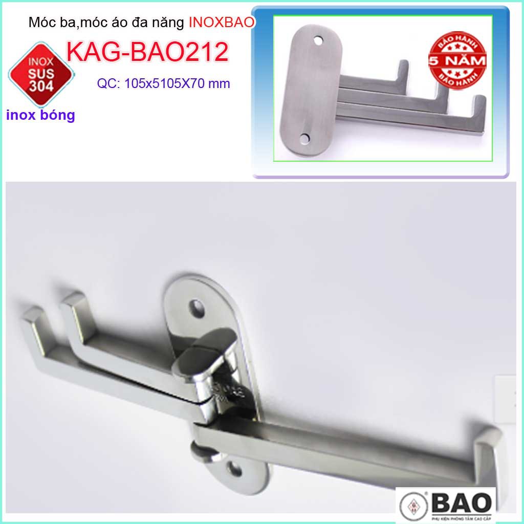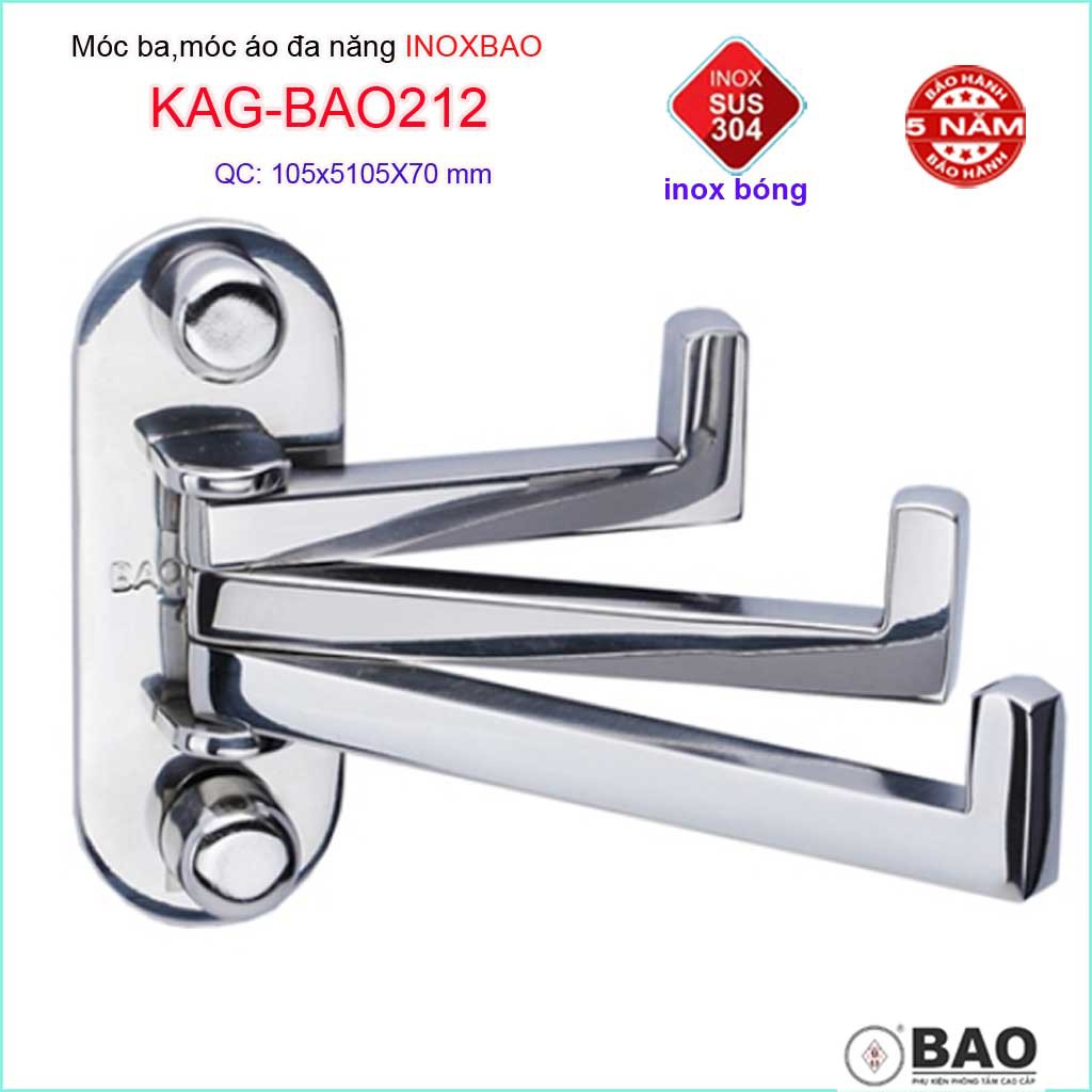 Móc 3 Inox Bảo KAG-BAO212, Móc xoay 180 độ treo đồ nhà tắm SUS304 thiết kế tuyệt đẹp sang trọng tinh tế đến từng chi tiế