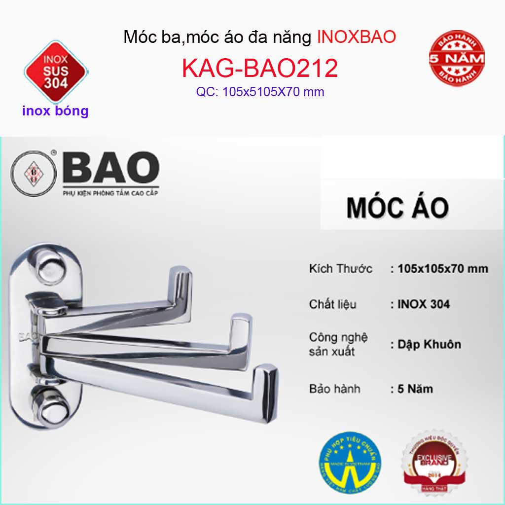 Móc 3 Inox Bảo KAG-BAO212, móc xoay 180 độ treo đồ nhà tắm SUS304 thiết kế tuyệt đẹp sang trọng tinh tế đến từng chi tiếtTHƯƠNG HIỆU INOX CAO CẤP HÀNG ĐẦU VIỆT NAM- SẢN PHẨM TINH TẾ ĐẾN TỪ CHI TIẾT