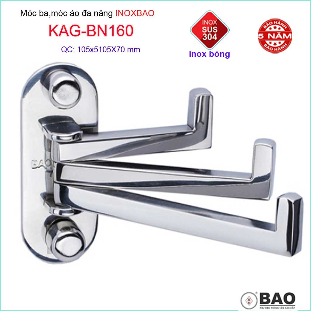 Móc 3 Inox Bảo KAG-BN160, móc xoay 180 độ treo đồ nhà tắm SUS304 thiết kế tuyệt đẹp sang trọng tinh tế đến từng chi tiết