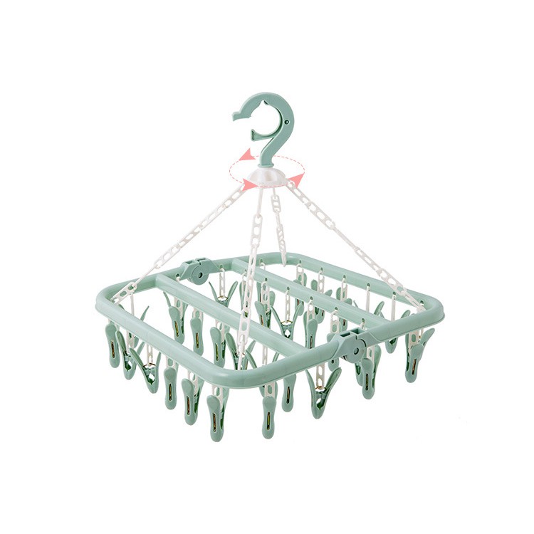 - Móc 32 kẹp giúp tăng diện tích phơi vớ, quần áo trẻ sơ sinh.- Thiết kế gấp gọn khi không sử dụng, đầu móc xoay 360 độ.
