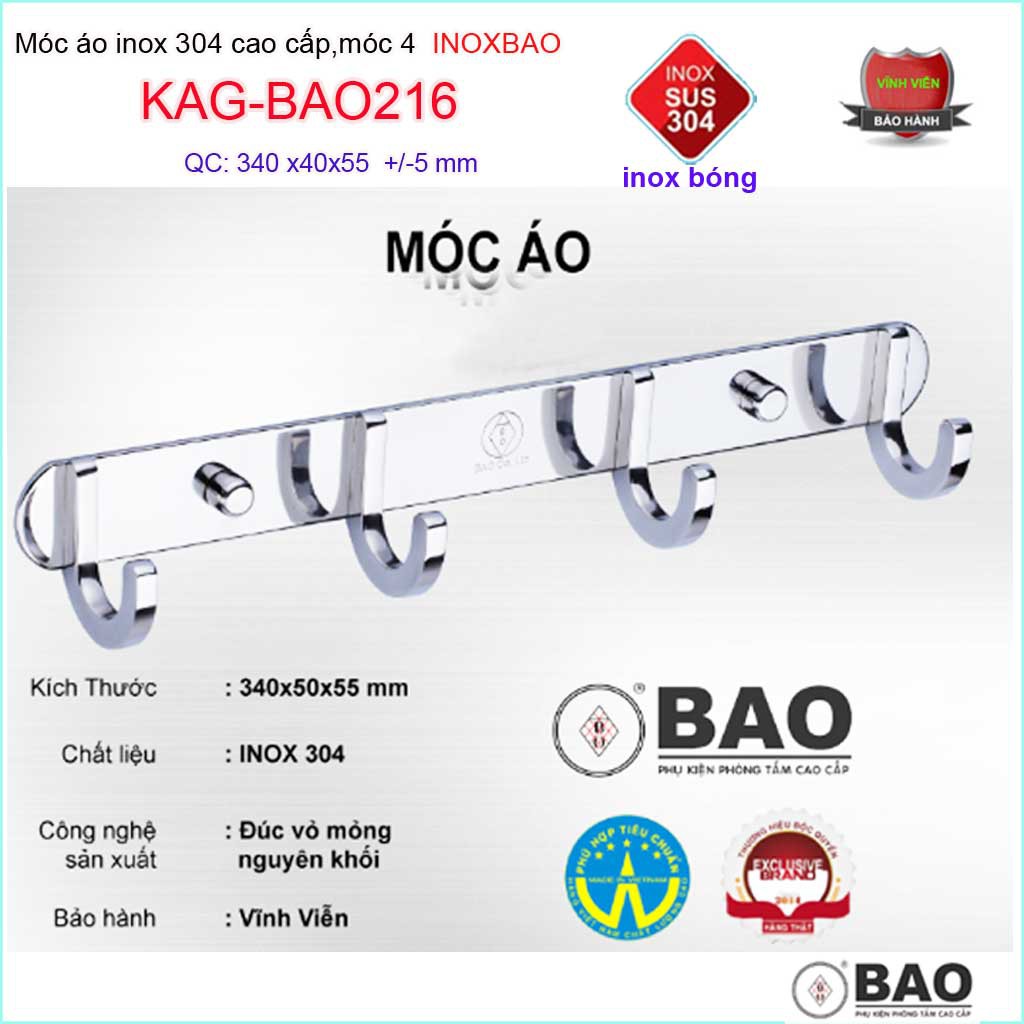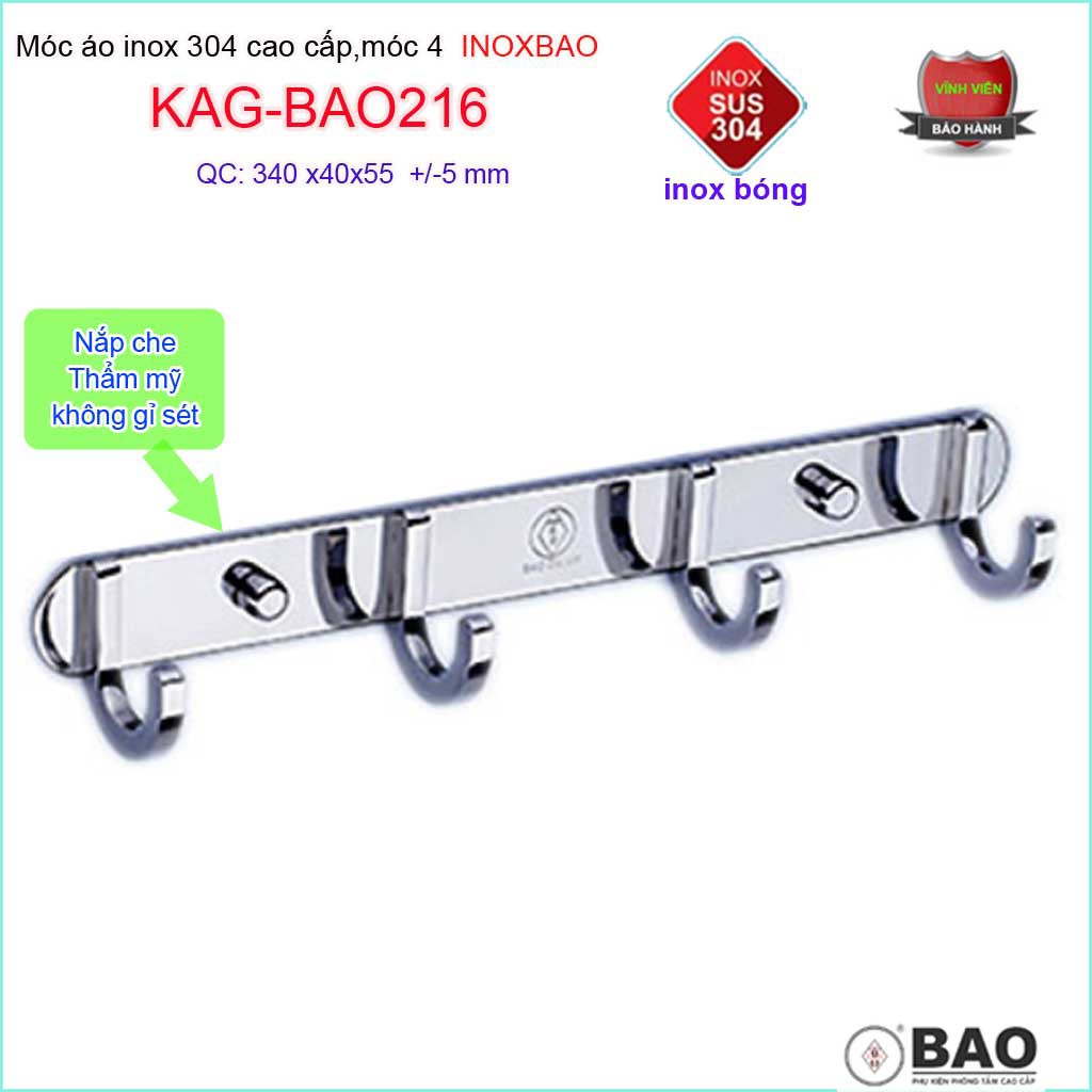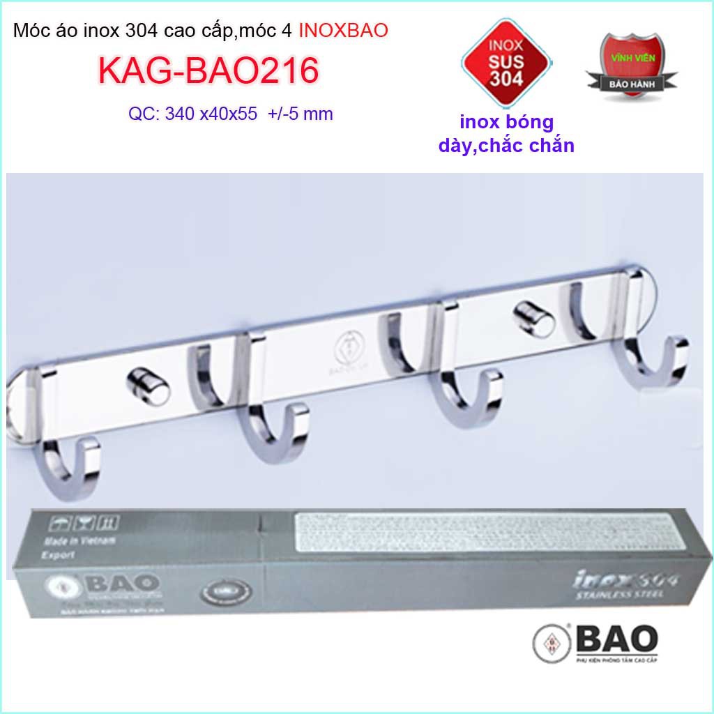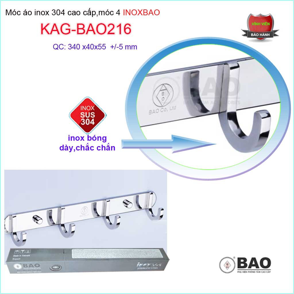 Móc 4 Inox Bảo KAG-BAO216, móc áo phòng tắm SUS304 hộp đúc vuông sang trọng thiết kế tin tế đến từng chi tiếtTHƯƠNG HIỆU INOX CAO CẤP HÀNG ĐẦU VIỆT NAM- SẢN PHẨM TINH TẾ ĐẾN TỪ CHI TIẾT