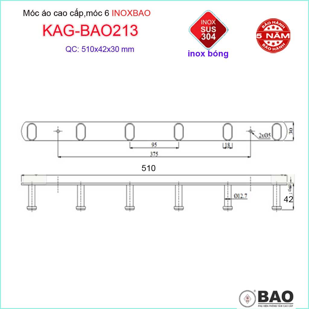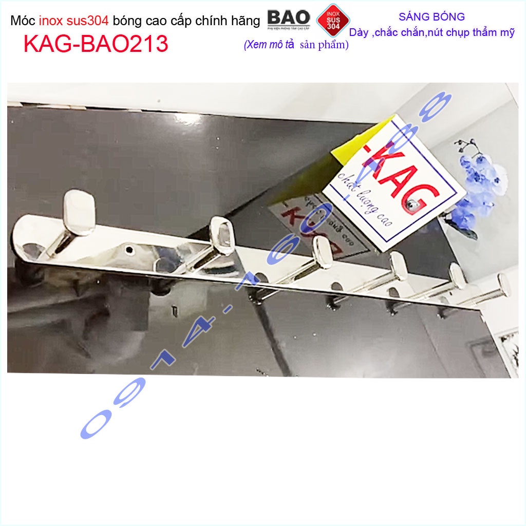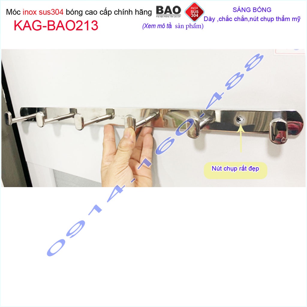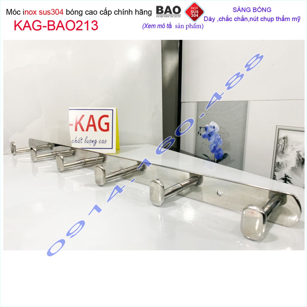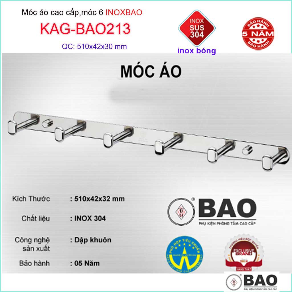 Móc 6 Inox Bảo KAG-BAO213, móc áo phòng tắm SUS304 dập sáng bóng sang trọng thiết kế tuyệt đẹp siêu bền