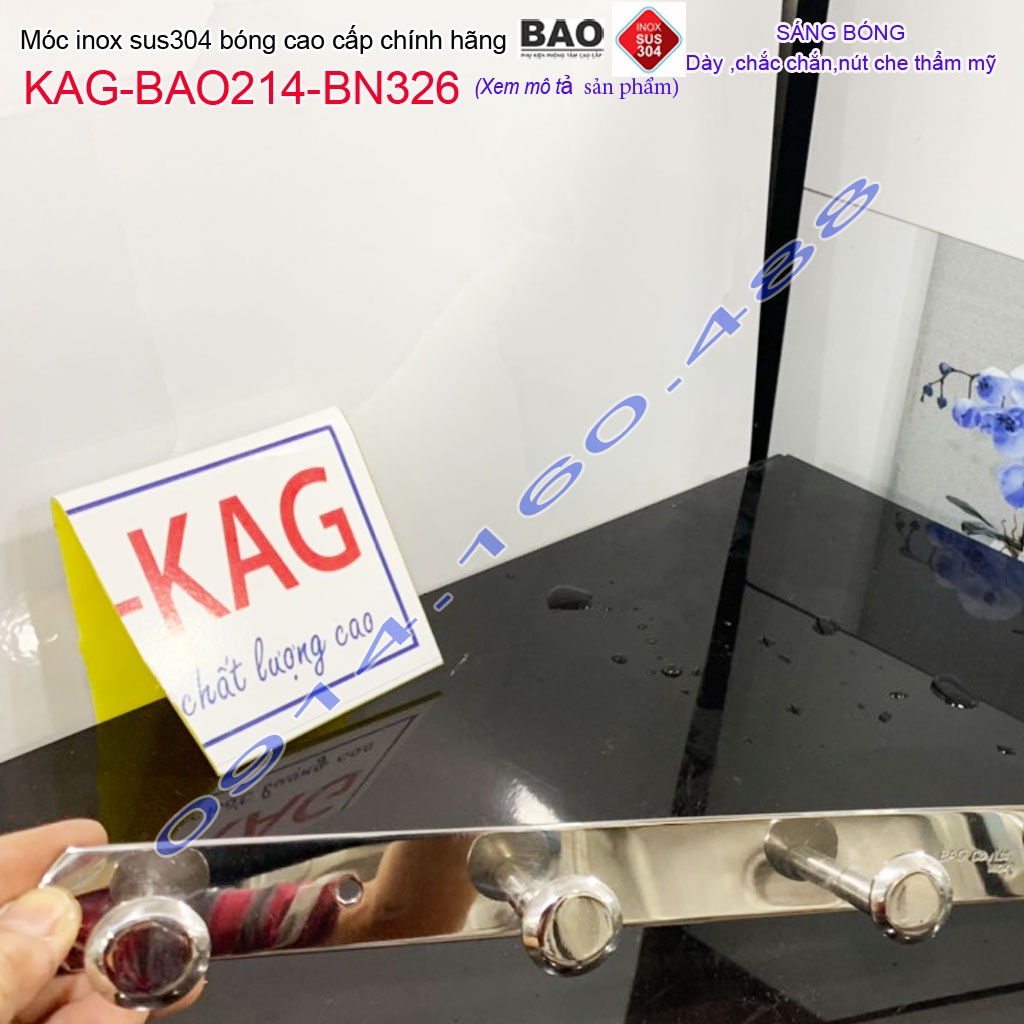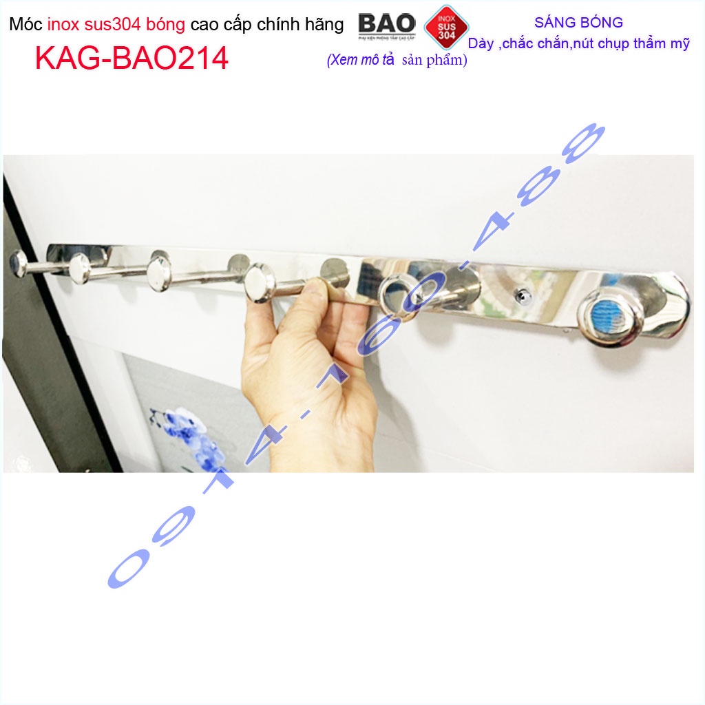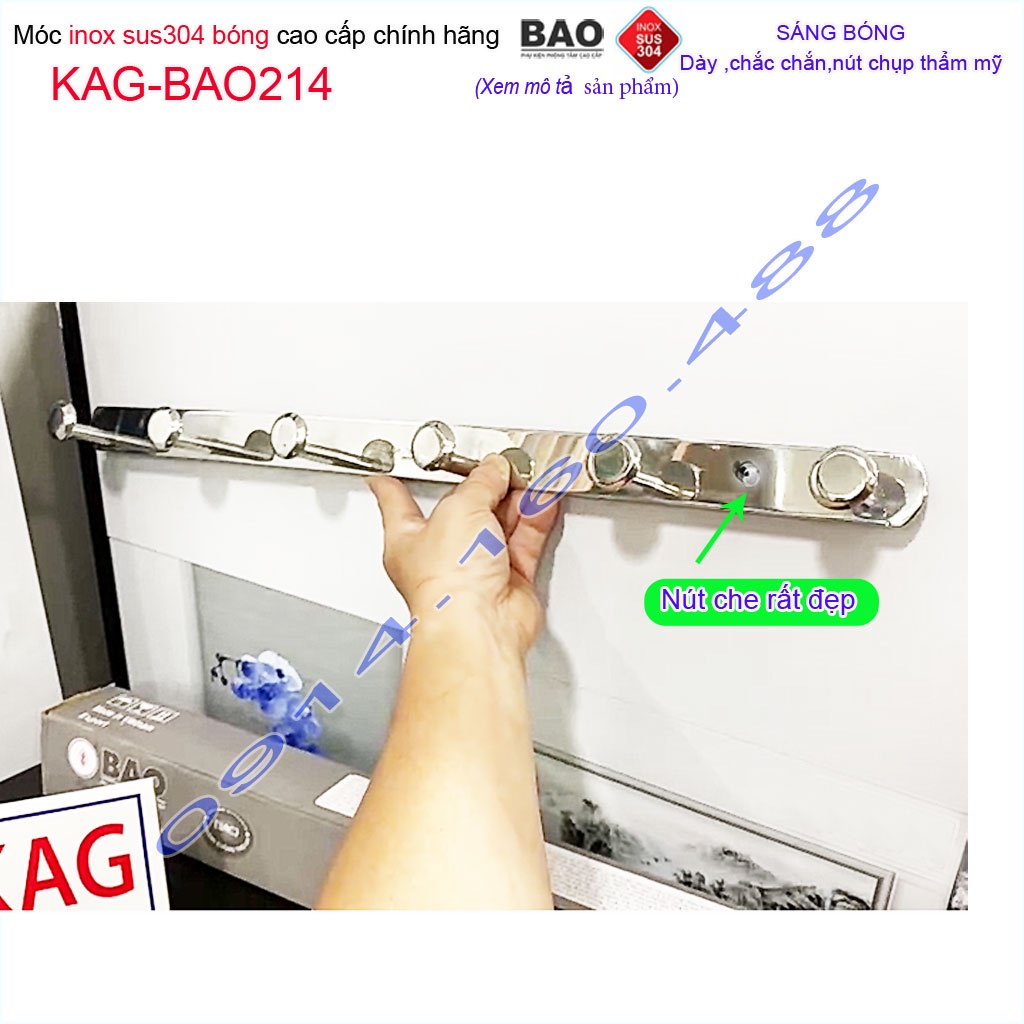 Móc 6 Inox Bảo KAG-BAO214, móc áo phòng tắm SUS304 dập sáng bóng sang trọng thiết kế tuyệt đẹp siêu bền