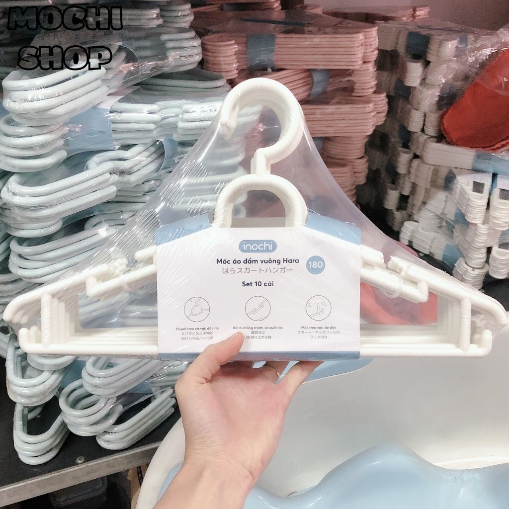 Giới thiệu Móc Áo Đầm Vuông 180 Hara INOCHI, Dành Cho Người Lớn Màu Sắc, Kiểu Dáng Đa Dạng, Gọn Gàng (Lốc 10 Chiếc)