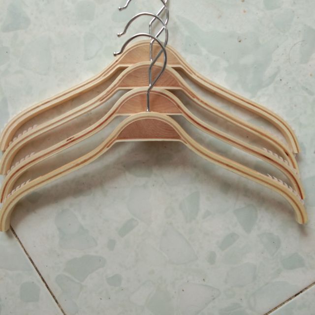 Móc làm từ gỗ,chắc chắn,đầu móc bằng sắt mạ kẽm không gỉ.2 bên vai có gắn đệm cao su để giúp giữ cố định áo không bị tuột khi treo.