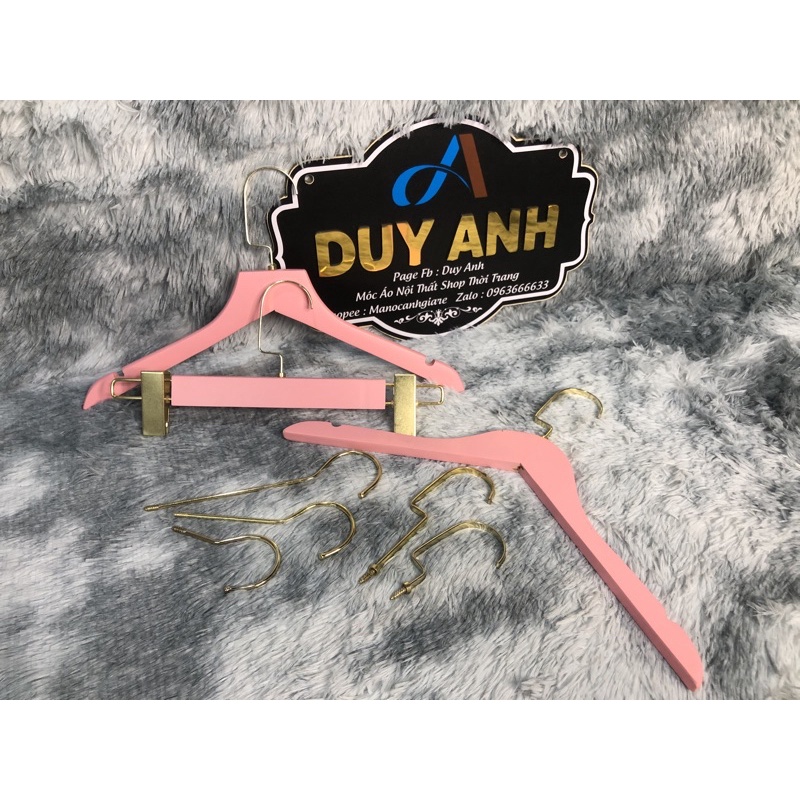 Giới thiệu Móc Áo Gỗ - Kẹp quần Gỗ [ HỒNG ] MẠ VÀNG