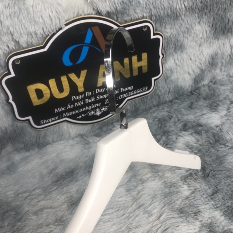 Móc áo trắng gỗMóc gỗ treo móc quần áo, được làm từ gỗ tự nhiên 100% được sơn phú bóng 2 lớp, móc sáng bóng ít bị tình trạng nhám hay xướt ở phần gỗ. Đầu móc kim loại chắc chắn được xi mạ nên ít gỉ sét có thể đùng trong thời gian dài.