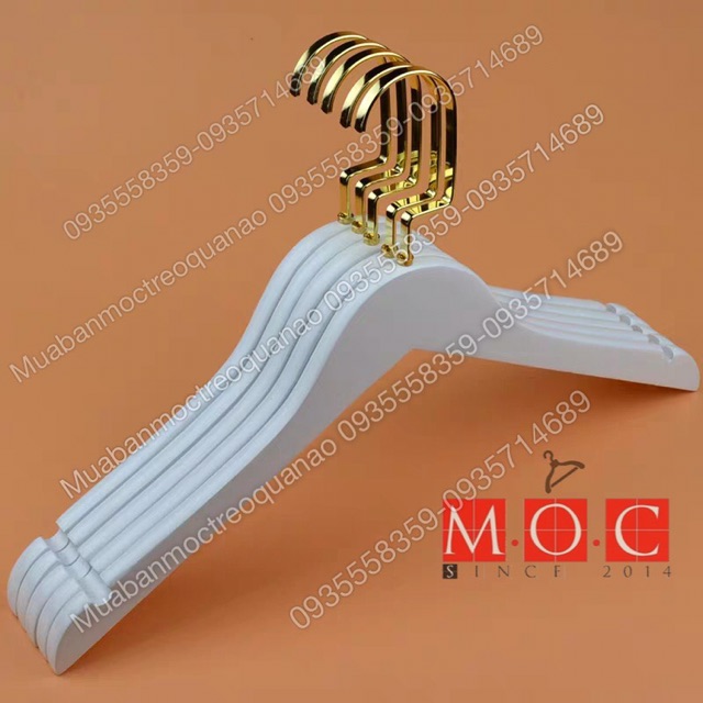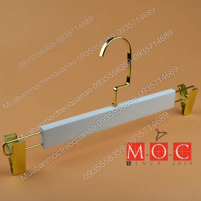 Móc áo , kẹp quần gỗ trắng với thiết kế đầu móc dẹp màu vàng kim sang trọng, bắt mắtChất liệu gỗ -nhựa sơn trắng tinh tế