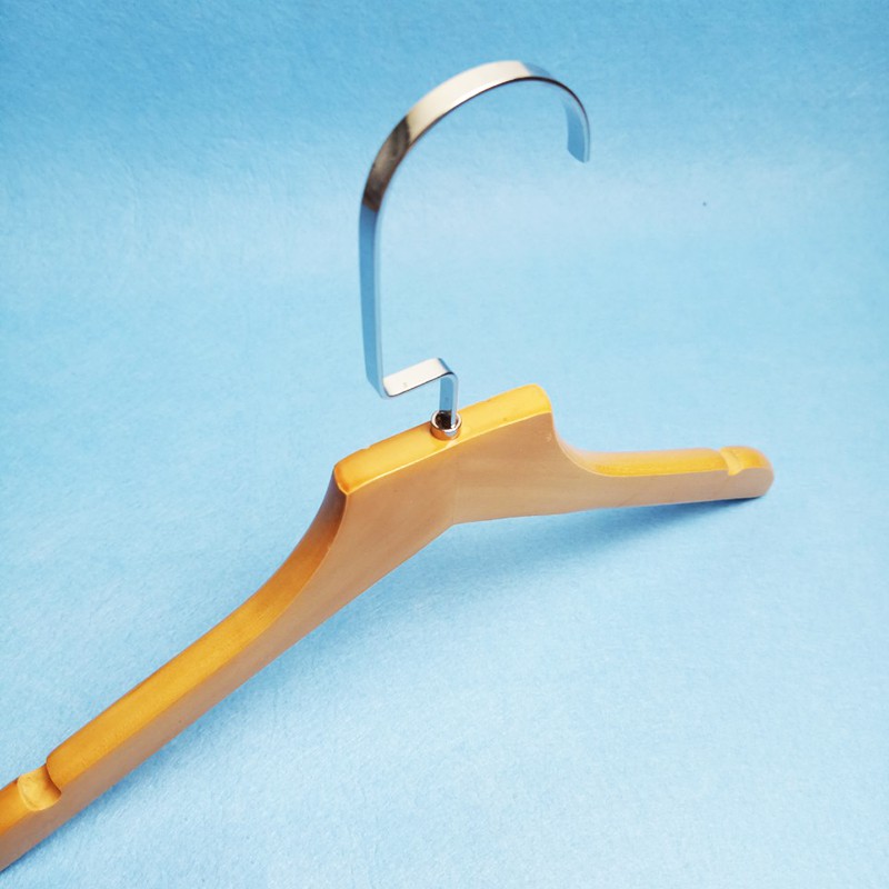 - Chất liệu: Móc có thân được làm từ gỗ tự nhiên dày 1.2 cm, chắc khoẻ, sơn màu vàng bóng gần với màu gỗ tự nhiên, đầu móc làm bằng inox. (Vai vuông hoặc tròn tùy theo từng lô hàng)