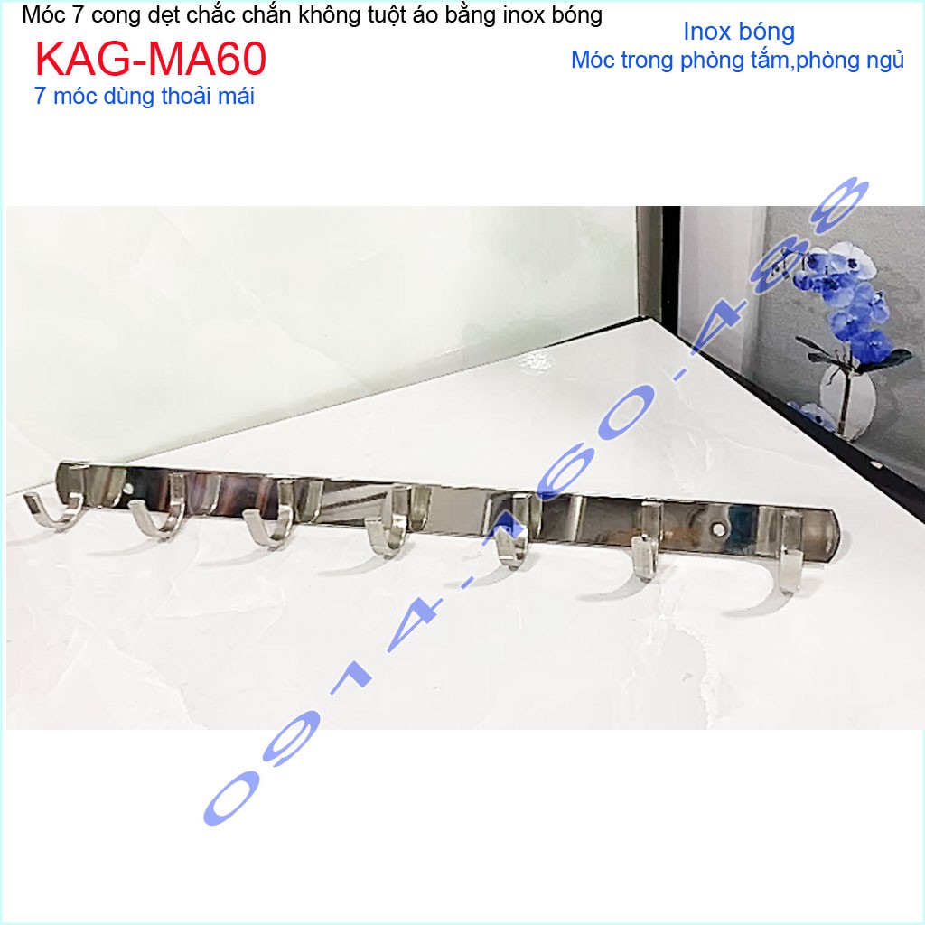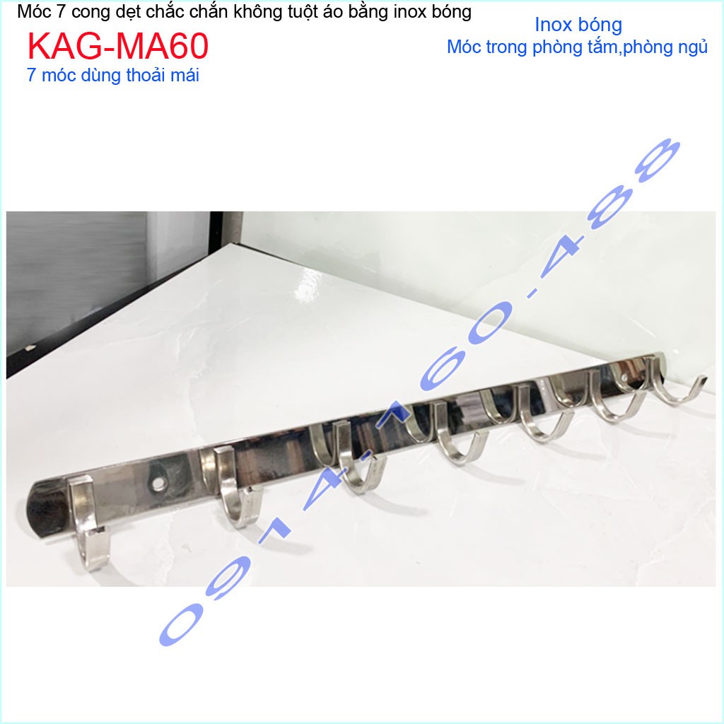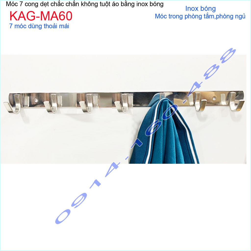 Móc áo inox dày 7 móc KAG-MA60, Best sales móc inox 7 siêu đẹp siêu bền sử dụng vĩnh viễnChất liệu: Inox dập dẹt sáng bóng theo thời gian,độ bóng bề mặt cao, hạn chế bám bẩn trở lại