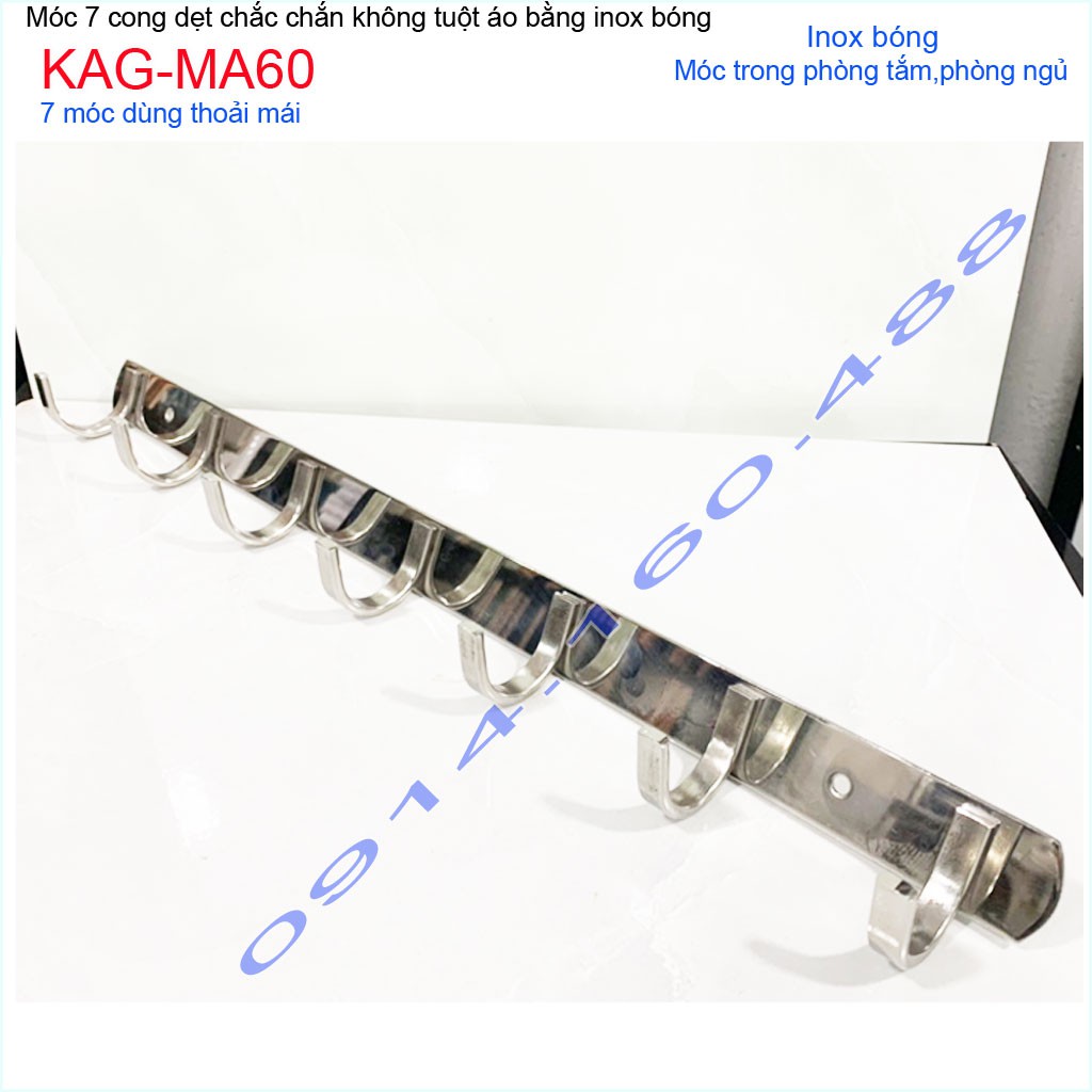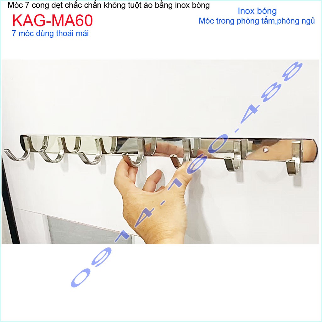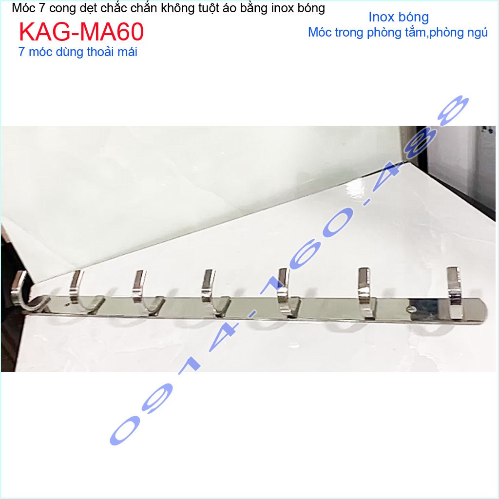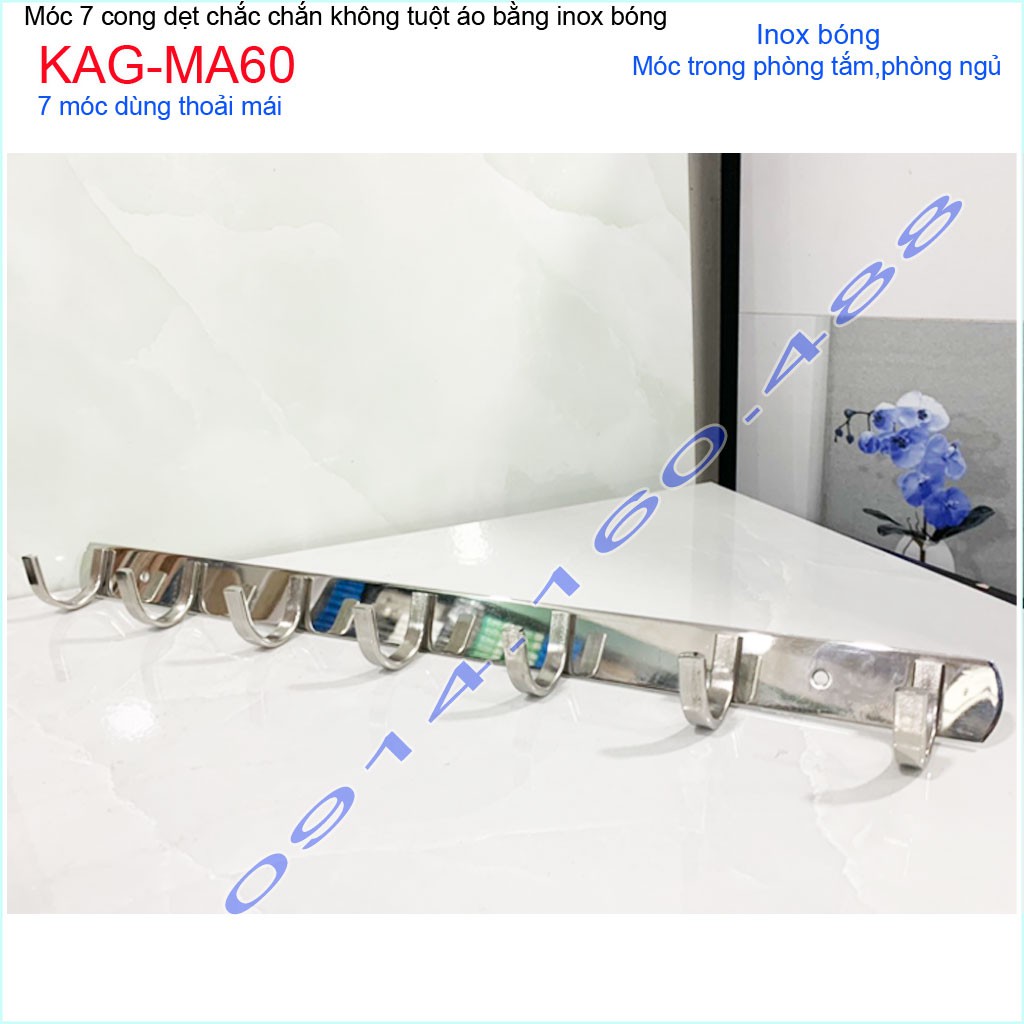 Móc áo inox dày 7 móc KAG-MA60, Best sales móc inox 7 siêu đẹp siêu bền sử dụng vĩnh viễnChất liệu: Inox dập dẹt sáng bóng theo thời gian,độ bóng bề mặt cao, hạn chế bám bẩn trở lại