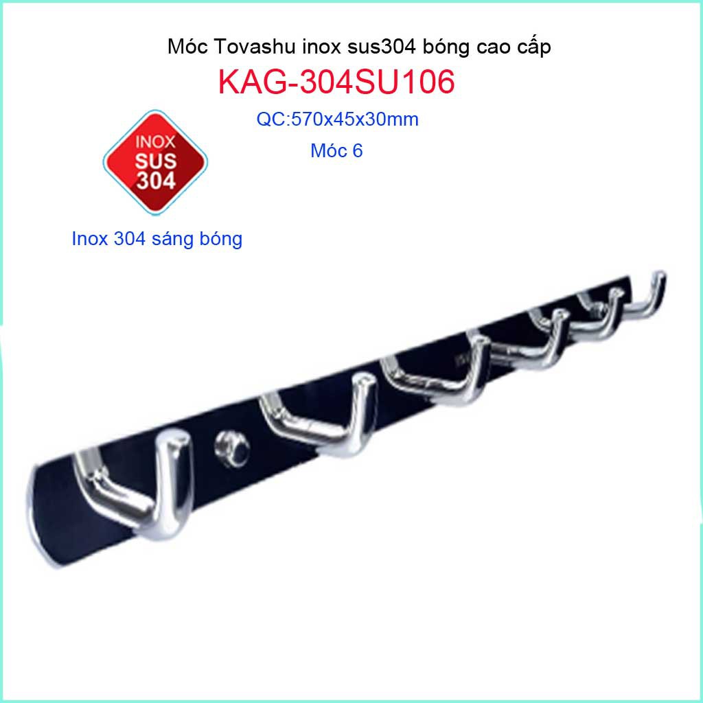 Móc áo Tovashu KAG-304SU106, móc 6 đúc Inox SUS304 Nhật Bản sáng bóng cao cấpKích thước dài 570mm x rộng 45mmx cao 45mm