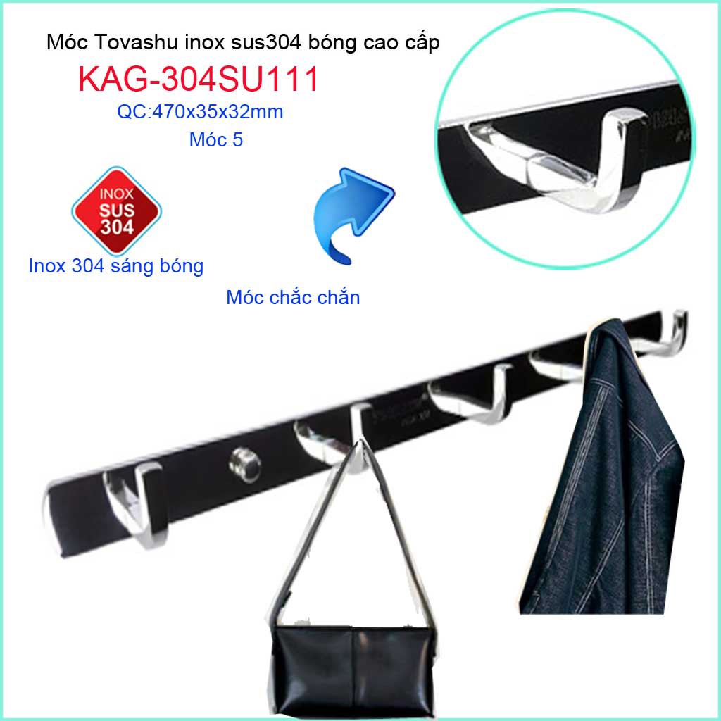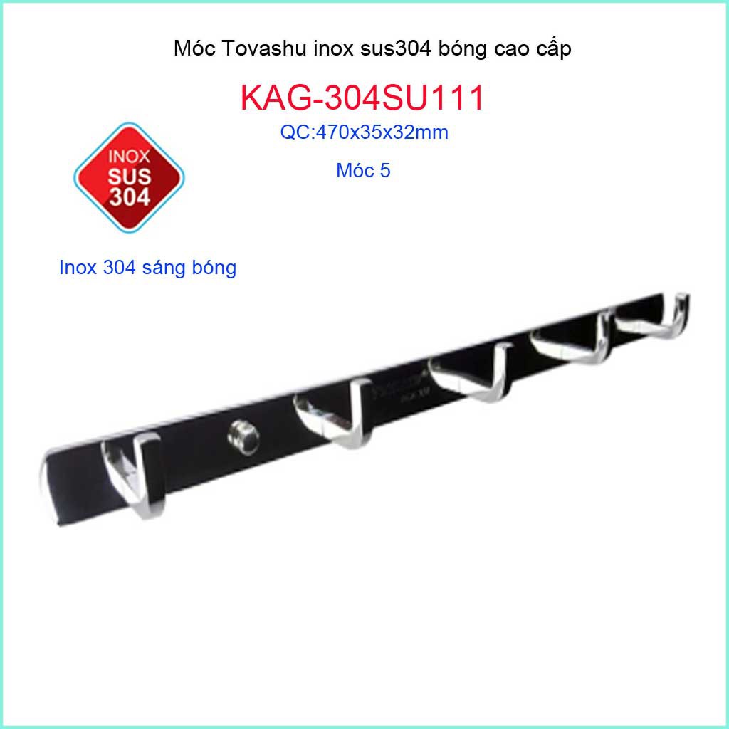 Móc áo Tovashu KAG-304SU111, móc 5 Inox SUS304 dập khuôn vuông Nhật Bản sáng bóng cao cấpKích thước dài 470mmx cao rộng 35mm x cao 32 mm