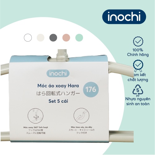 Giới thiệu Móc áo xoay Inochi- Hara 176 màuTrắng ngọc/ Trắng kem/ Ghi sữa/ Hồng nhạt/ Xanh bạc hà