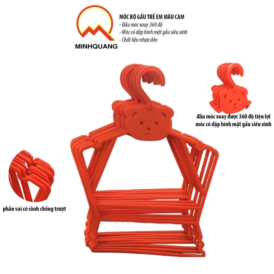 Nhà cửa & Đời sống > Sắp xếp nhà cửa > Mắc áo || móc bộ trẻ em-mắc bộ gấu màu cam-đầu móc xoay 360 độ-có 2 size từ 6 tháng-3 tuổi và từ 4-7 tuổiCòn hàng