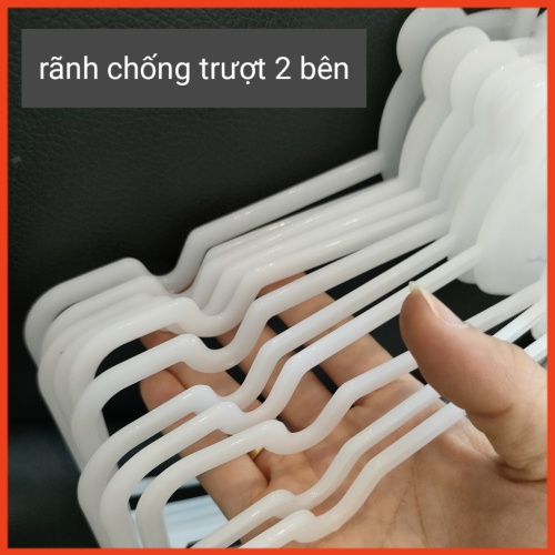 Nhà cửa & Đời sống > Sắp xếp nhà cửa > Mắc áo || Móc bộ trẻ em size nhí (sơ sinh-3 tuổi) bằng nhựa cao cấp in mặt gấu, móc bộ màu trắng có đầu móc xoay 360 độCòn hàng