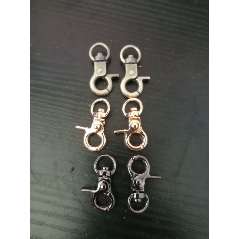 Móc càng cua 0.8cm. dùng trong túi ví....Giá: 10k/ cặp. có màu vàng, đen, đồng.