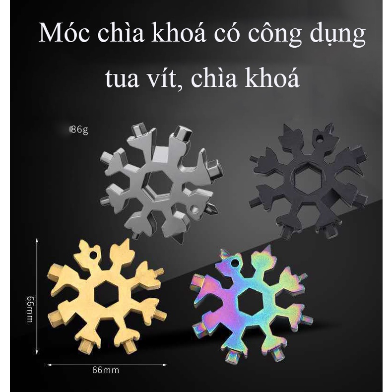 Móc chìa khóa hình bông tuyết - 66mm , 68g - tích hợp sẵn 18 dụng cụ tua vít , cờ lê , lục giác , mở nắp bia