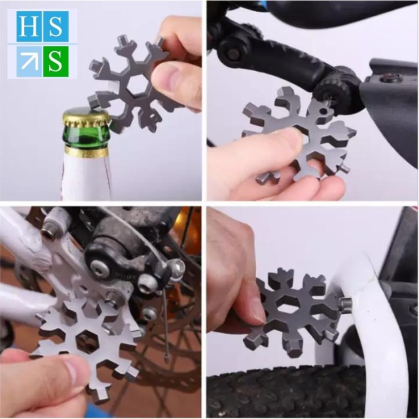 TUA VÍT CỜ LÊ LỤC GIÁC ĐA NĂNG 19 IN 1 HÌNH BÔNG TUYẾT CÓ MÓC KHÓA- Sử dụng như móc chìa khóa hoặc móc ba lô để bạn có thể sử dụng khi cần sửa chữa xe đạp hoặc mở chai.