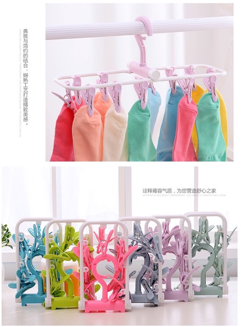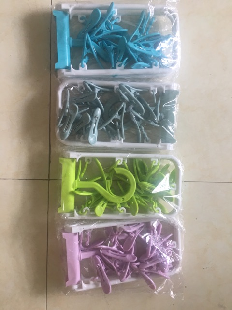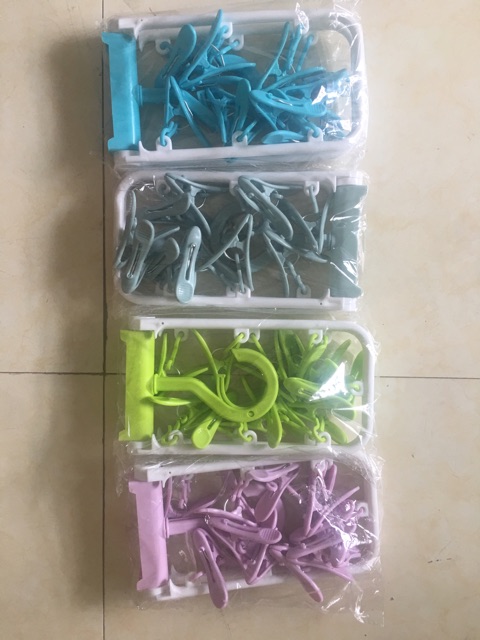 Móc chùm 12 kẹp đa năng sử dụng kẹp tất, đồ lót, hay khăn sữa. Giá rẻ lại gọn các chị em cứ sắm vài cài về dùng phân chia đồ phơi theo ý thíchMóc chùm 12 kẹp xoay 360
