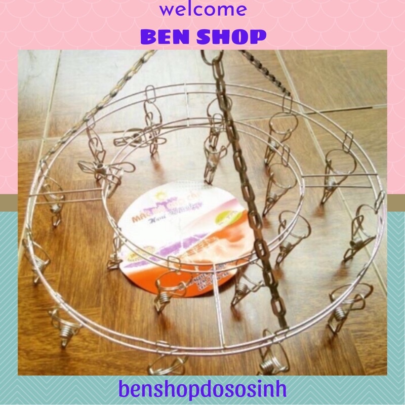 Móc chùm làm bằng inox, bền đẹp. Màu trắng bạc20 kẹp chắc chắn tiện lợi treo đồ nhỏ khi giặt