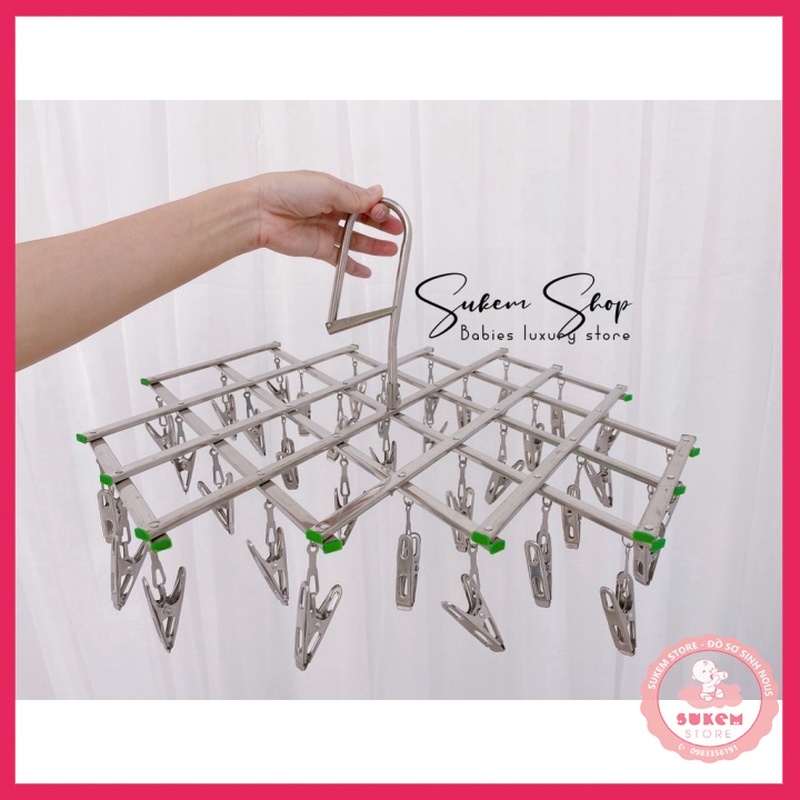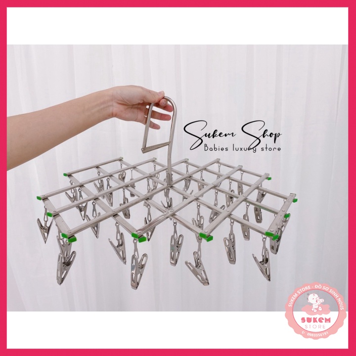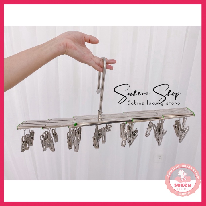 Móc Chùm Inox/Móc Phơi Đồ Inox 35 Kẹp Tiện Lợi , Không Han Rỉ, Bền, Đẹp✅ Cam Kết Tại Sukem Store
