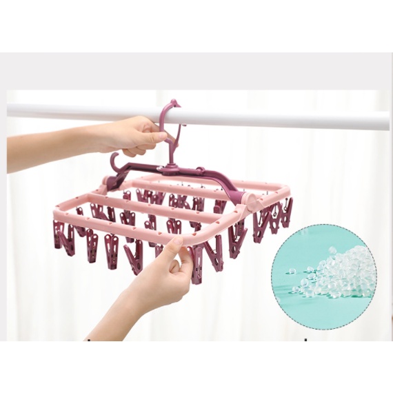 - Móc treo tất, quần áo 32 kẹp làm từ chất liệu an toàn với 32 chiếc móc đi kèm cho phép phơi những loại đồ nhỏ và nhanh khô.