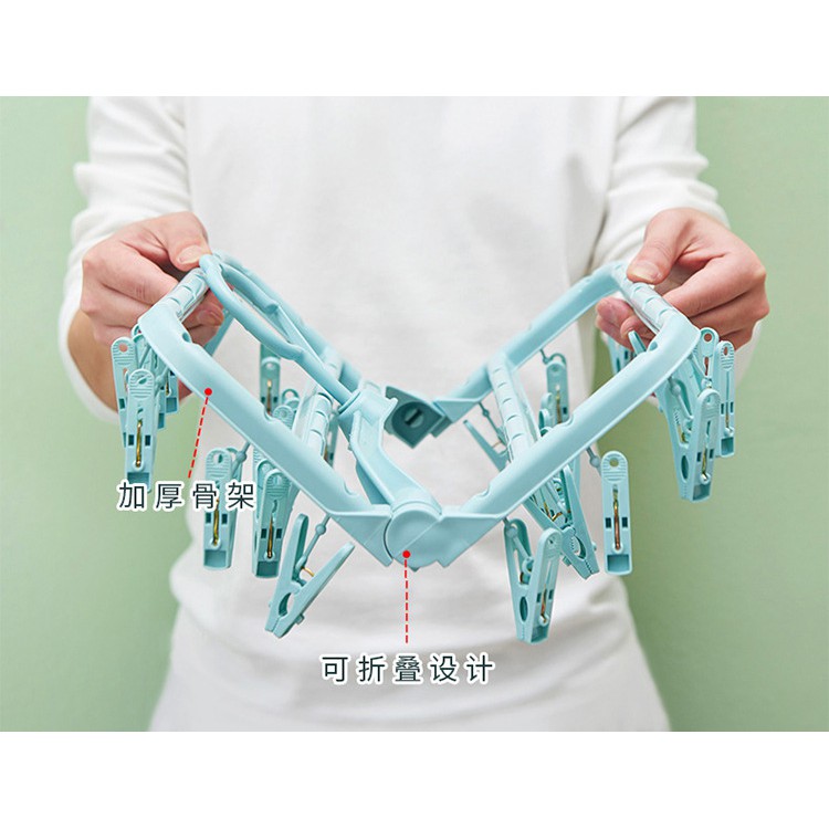 - Móc gồm 32 chiếc kẹp nhỏ giúp bạn phơi khăn tay, tất, găng tay, khăn len của bé mà không lo bị rơi dù trời gió to.
