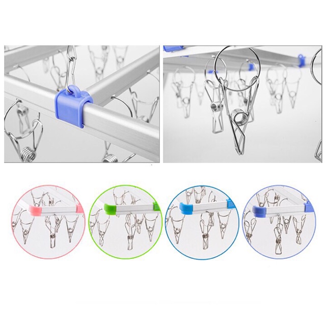 Sản phẩm tiện lợi được thiết kế với 28 chiếc kẹp chắn chắn, dễ dàng sử dụng có thể dùng để treo quần áo, khăn, tất, ... và rất nhiều đồ dùng sơ sinh khác của bé.