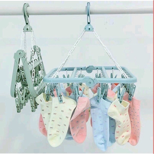 - Móc treo tất, quần áo 32 kẹp làm từ chất liệu an toàn với 32 chiếc móc đi kèm cho phép phơi những loại đồ nhỏ và nhanh khô.