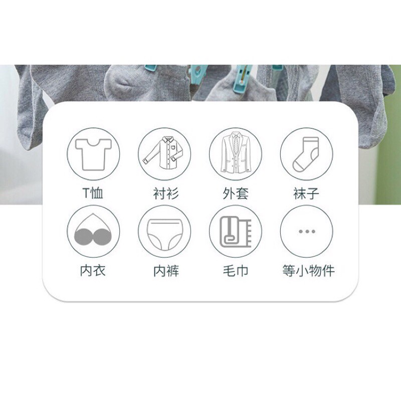 - Móc treo tất, quần áo 32 kẹp làm từ chất liệu an toàn với 32 chiếc móc đi kèm cho phép phơi những loại đồ nhỏ và nhanh khô.