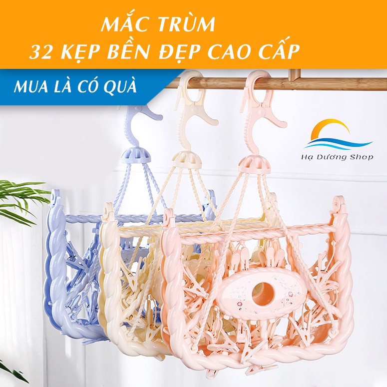 Móc chùm phơi đồ cho bé cao cấp bền đệp chắc chắn không bị mủn khi nắng 32 kẹp gấp gọn nhiều màu cá tính HADU
