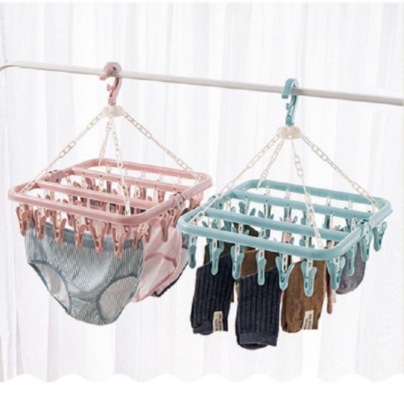 Nhà cửa & Đời sống > Dụng cụ chăm sóc nhà cửa > Dây phơi & giá phơi quần áo || Móc chùm phơi đồ sơ sinh, tất, đồ lót 32 móc gấp gọnCòn hàng