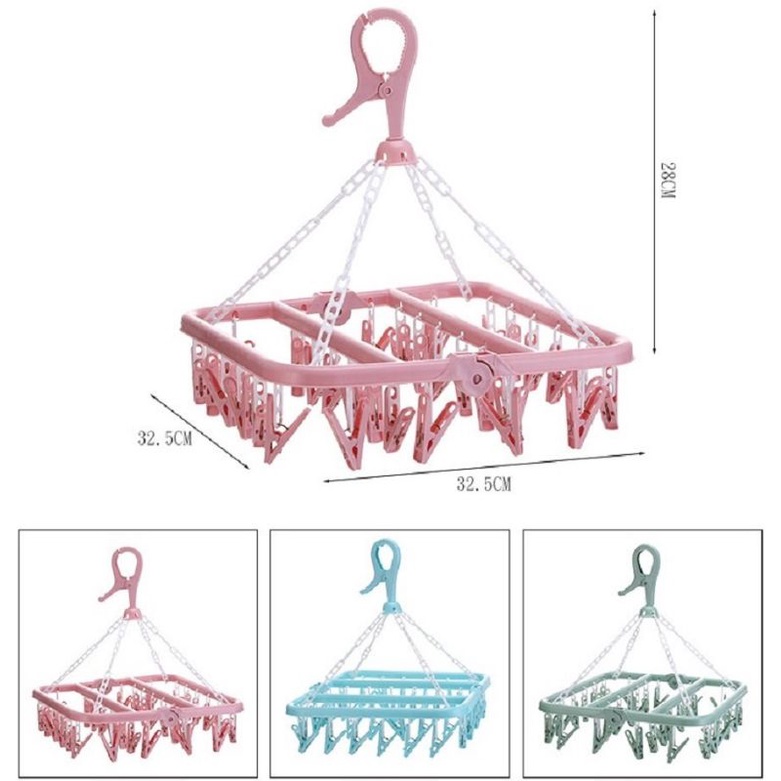 Móc trùm nhựa 32 kẹp tiện dụng phơi đồ cho em bé- Chất liệu: Nhựa an toàn , gấp gọn khi không sử dụng.