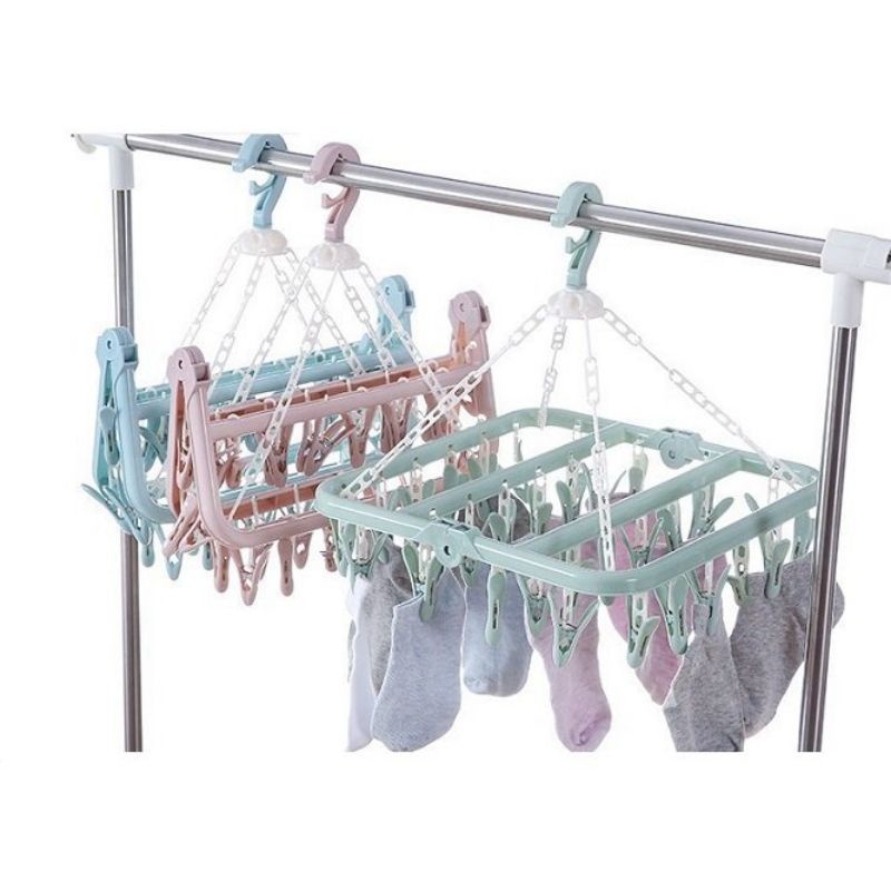 Móc chùm phơi đồ sơ sinh, tất, đồ lót 32 móc gấp gọn