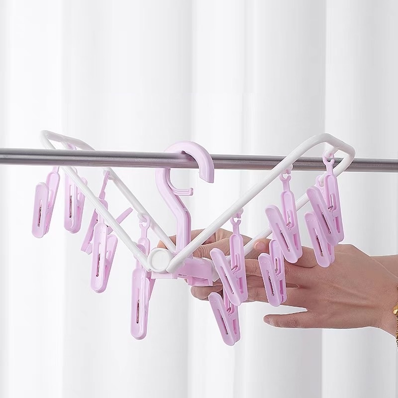 - Móc kẹp giúp tiết kiệm diện tích và đảm bảo sạch sẽ khi phơi đồ cho bé, tất vớ, quần áo nhỏ.