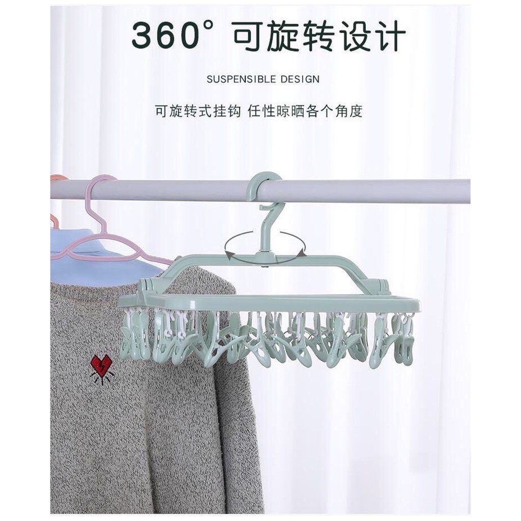 🍀 - Móc treo tất, quần áo 32 kẹp làm từ chất liệu an toàn với 32 chiếc móc đi kèm cho phép phơi những loại đồ nhỏ và nhanh khô.