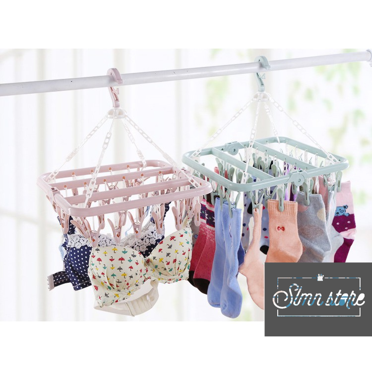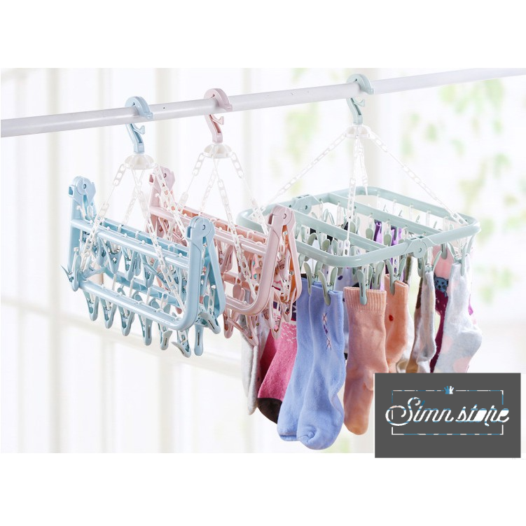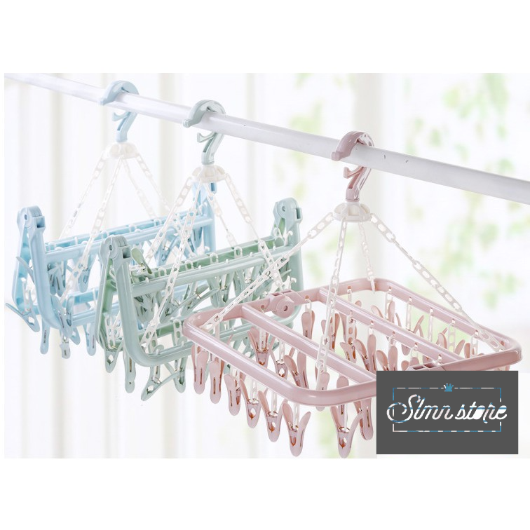 32 Clip Plastic Drying Hanger Rack for Hanging Clothes Towels Shorts Underwears Socks Baby Clothes
