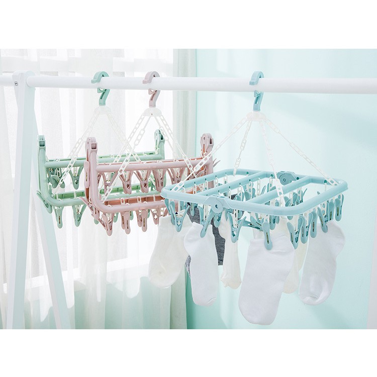 Móc Chùm Phơi Quần Áo, Đồ Baby, Đồ Nhỏ 32 Kẹp Có Thể Gấp Gọn