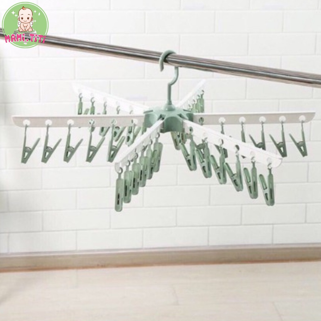 MAMI TITI xin chào !Móc chùm phơi quần áo, MÓC TREO QUẦN ÁO 32 KẸP ĐA NĂNG CÓ THỂ GẤP GỌN TIỆN DỤNG CHO TRẺ SƠ SINH