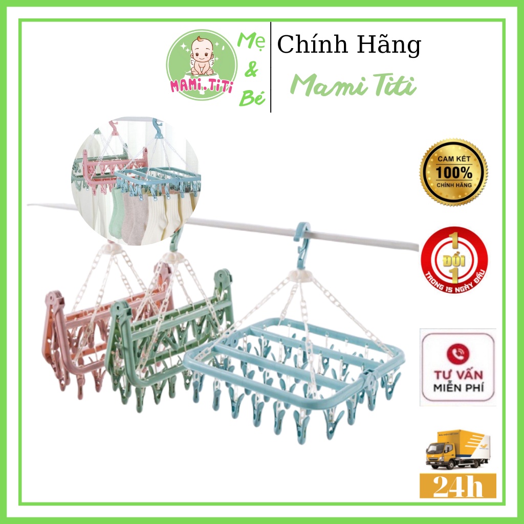 MAMI TITI xin chào !Móc chùm phơi quần áo, MÓC TREO QUẦN ÁO [ 32 KẸP ĐA NĂNG CÓ THỂ GẤP GỌN TIỆN DỤNG CHO TRẺ SƠ SINH ]