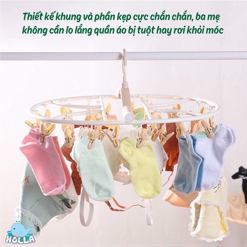 🐳 Cổ nối móc treo có thể xoay linh hoạt 360 độ linh hoạt, cùng thiết kế tròn giúp cho ánh năng mặt trời tiếp xúc với quần áo đều hơn