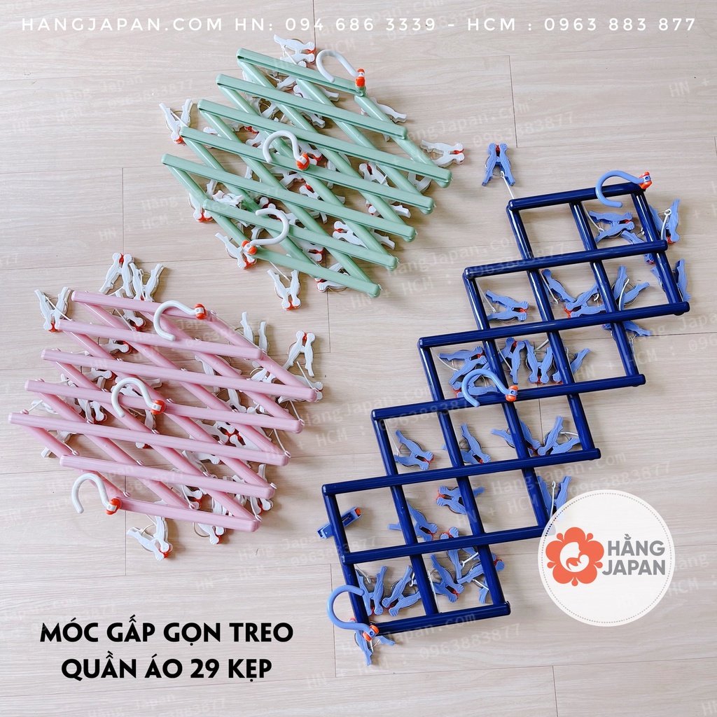 𝗠𝗼́𝗰 𝗰𝗵𝘂̀𝗺 𝘁𝗿𝗲𝗼 𝗾𝘂𝗮̂̀𝗻 𝗮́𝗼 𝟮𝟵 𝗸𝗲̣𝗽 kiểu ziczac có thể xếp gọn luôn nè. Loại này có tận 3 móc giúp mình treo kiên cố, phơi ngoài gió cũng không sợ lung lay.👉🏻 Kích thước: 39 x 15 x 22cm.