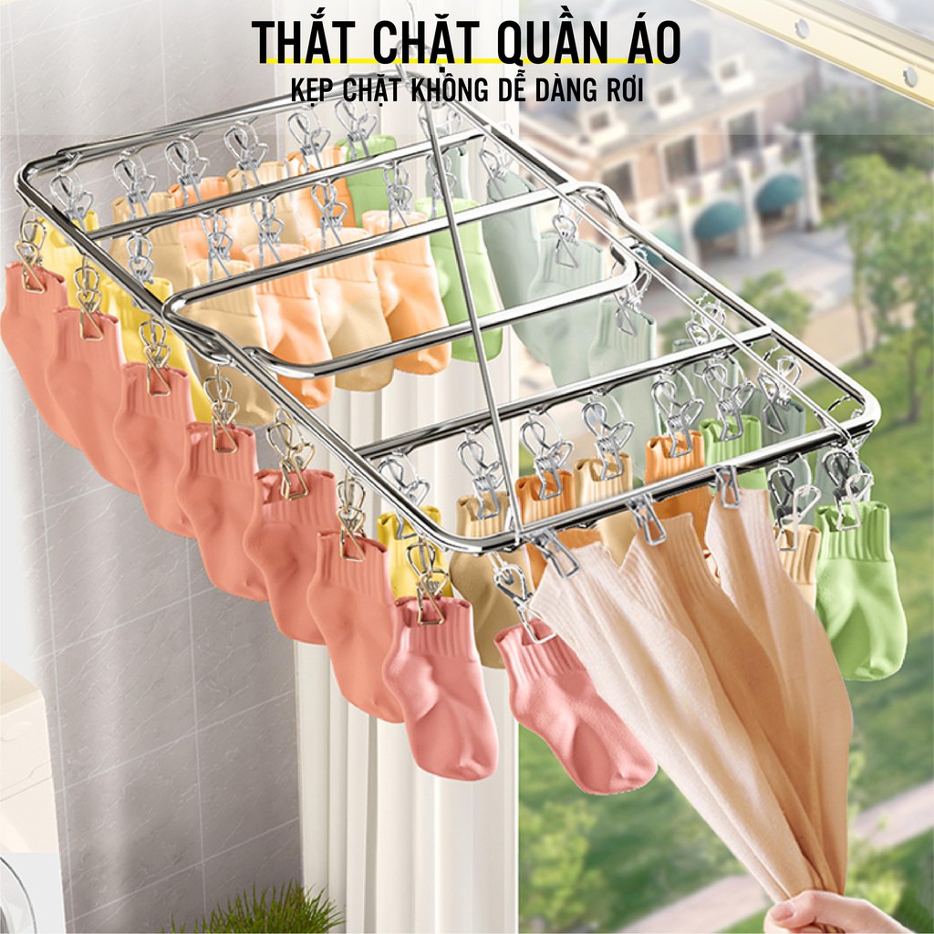 - Với thiết kế lên tới lên đến 52 kẹp vừa tiết kiệm không gian vừa giúp quần áo mau khô