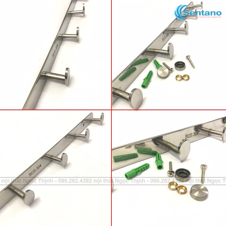 * Phụ kiện đi kèm: bộ vít, tắc kê nhựa, và đặc biệt kèm theo đầu chụp che vít, giúp móc treo nhìn đẹp và sang trọng hơn