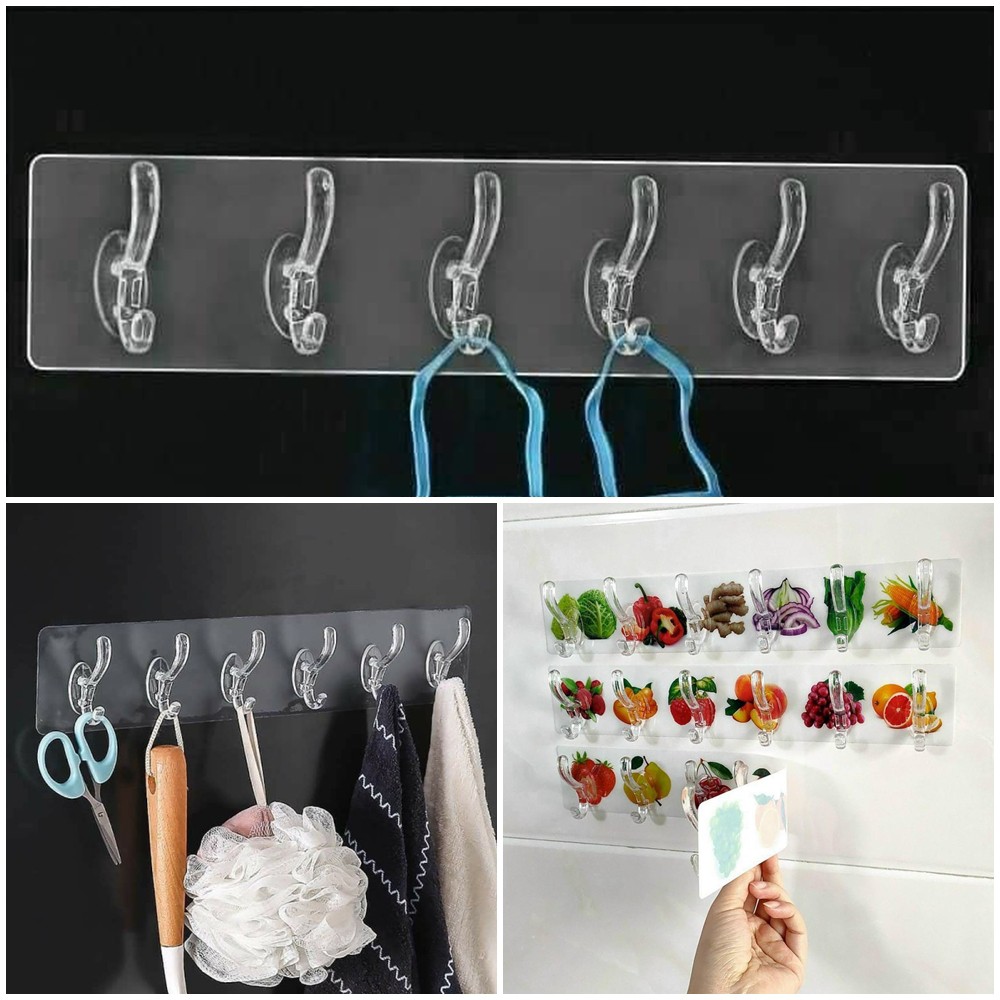 Nhà cửa & Đời sống > Sắp xếp nhà cửa > Móc treo || Móc dán nguyên khối 6 móc siêu dính đa năng chịu lực Thanh Dán Tường Trong Suốt 6 Nhánh Treo Dính Cực ChắcCòn hàng