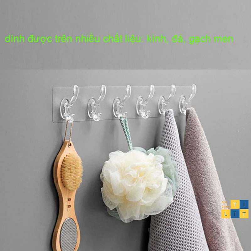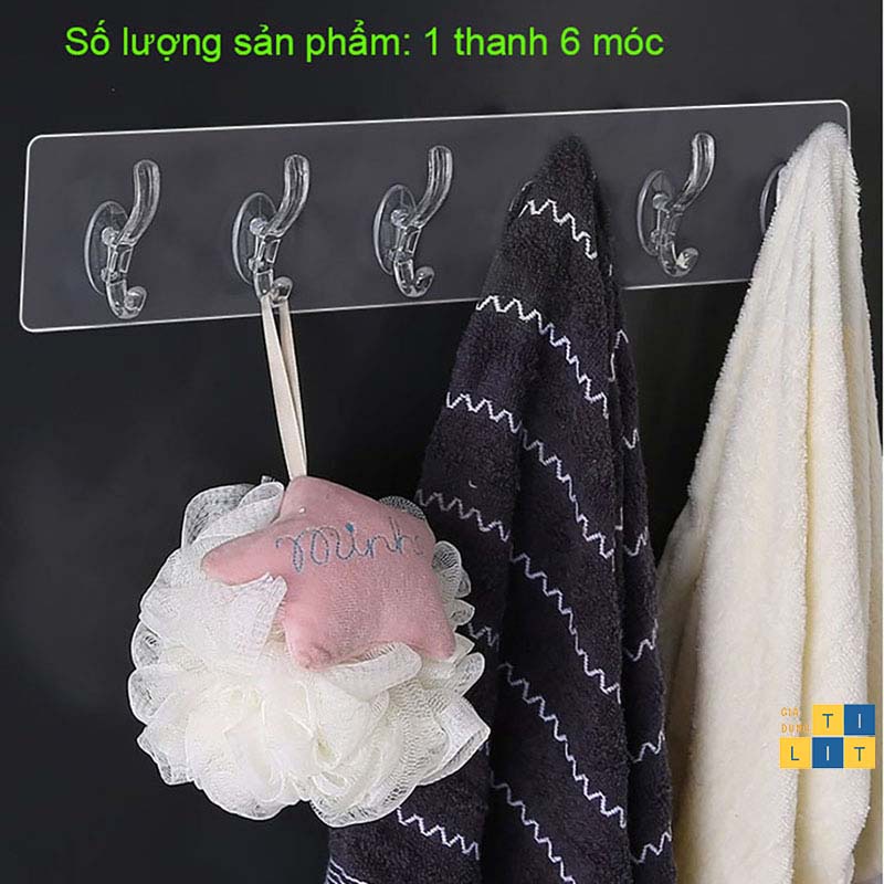 Nhà cửa & Đời sống > Sắp xếp nhà cửa > Móc treo || MÓC DÁN NGUYÊN KHỐI 6 MÓC TRONG SUỐT- Thanh 6 móc treo đồ dán tường siêu dính chịu lực đa năng trong suốt [MÓC 6]Còn hàng
