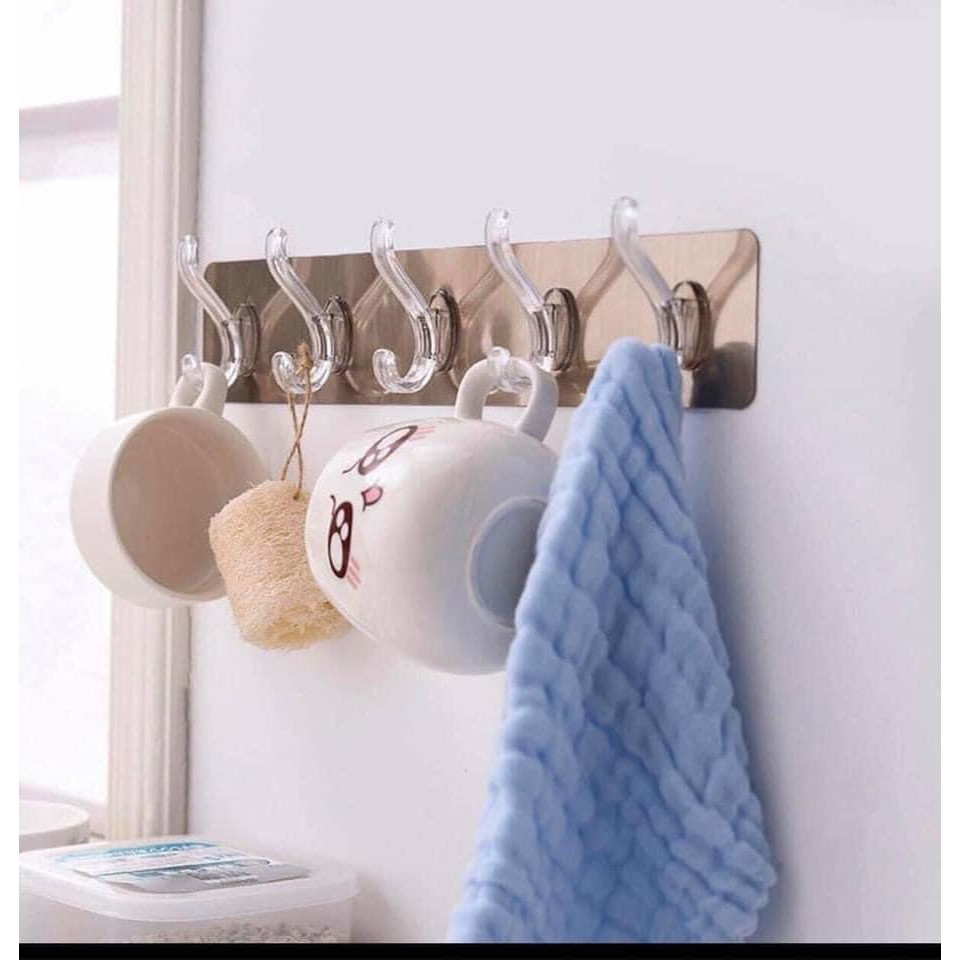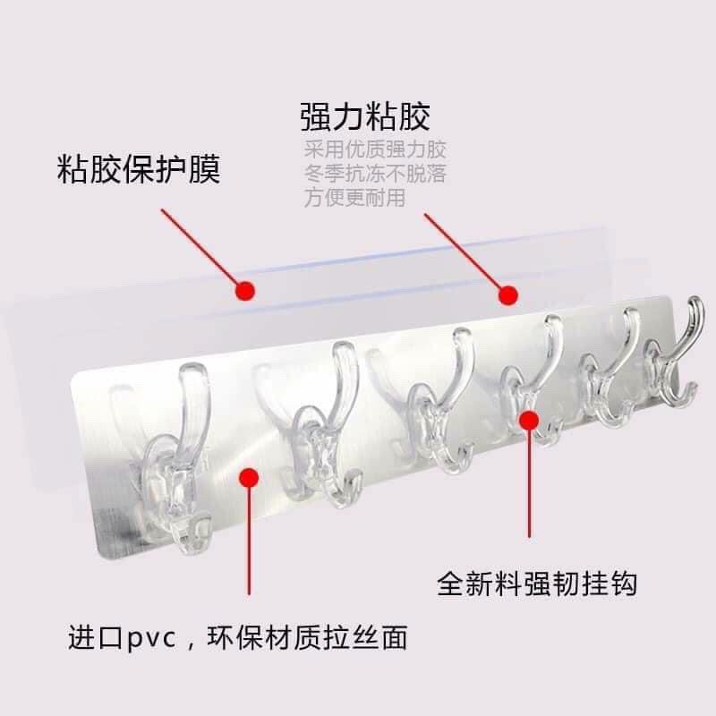 -Móc treo là 1 Thanh dài gồm 6 móc treo đa năng treo được nhiều vật dụng cùng lúc, tái sử dụng dễ dàng bằng cách rửa và lau khô. Chịu được tải trọng 3-5 kg, là vật dụng thông minh giúp không gian trở nên gọn gàng, ngăn nắp hơn bao giờ