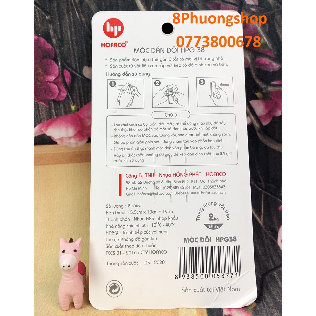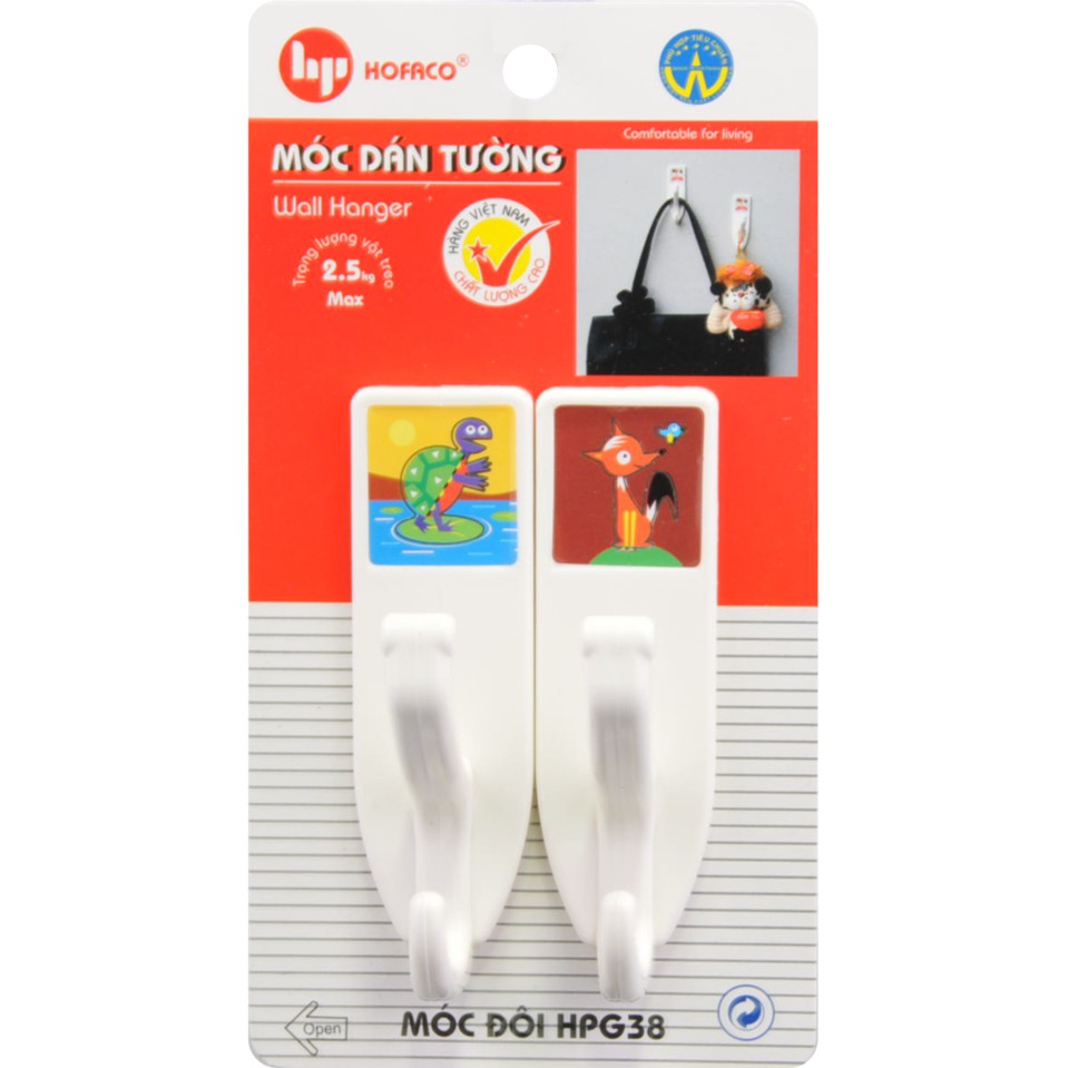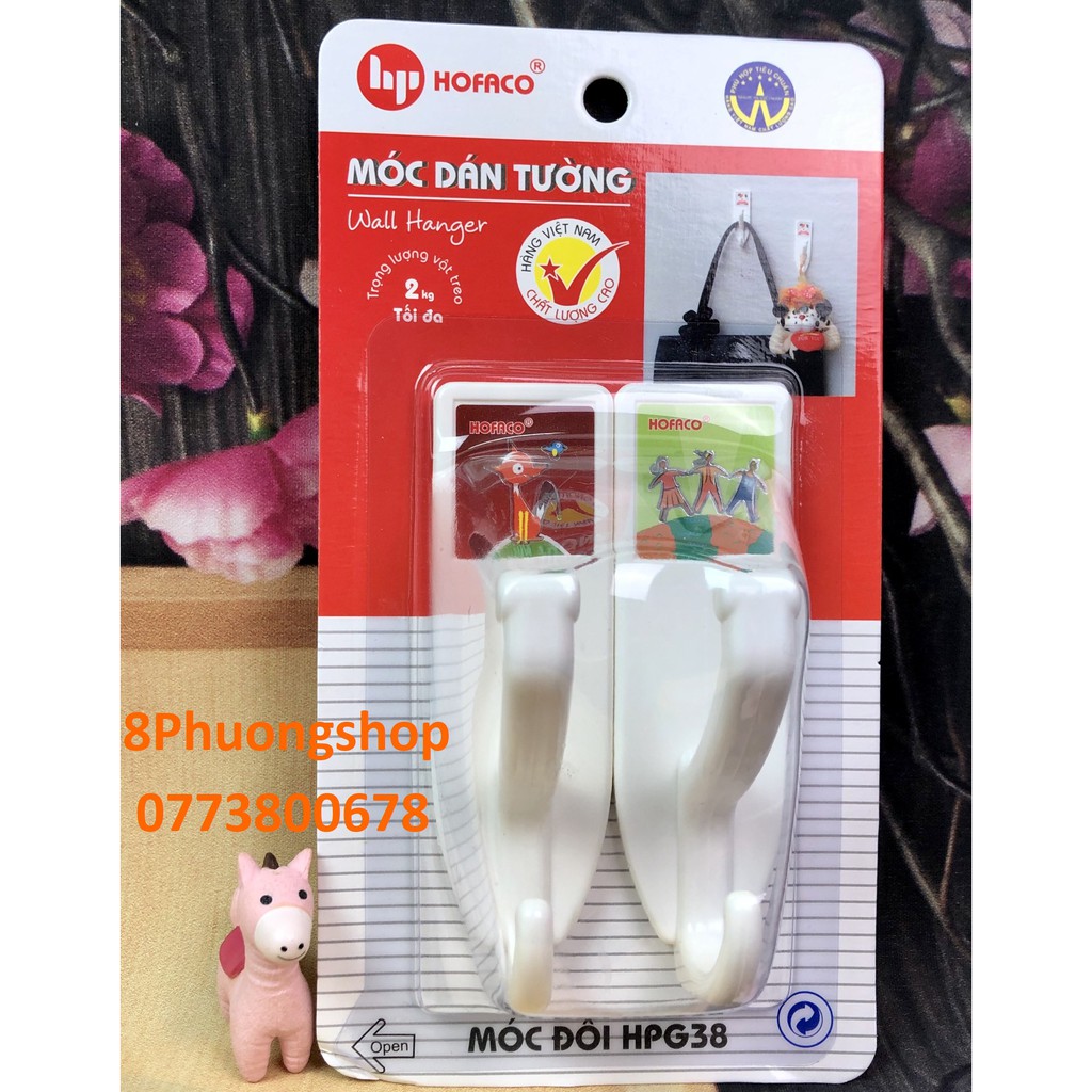 Móc dán tường bằng nhựa cao cấp HOFACO - Móc đôi HPG38 – Móc dán dính tường chịu lực tiện lợi;❤️ Sản phẩm của Công Ty Nhựa Hồng Phát – HOFACO – Hàng Việt Nam chất lượng cao.